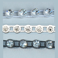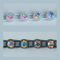 Rim Cup Banding HAS point back rhinestones set in plastic cups held with running strings of either nylon (non elastic) or elastic (stretch banding - Only Preciosa.) Preciosa discontinued producting of the banding and we now offer a Rhinestone Guy Cup banding at a better price Point.